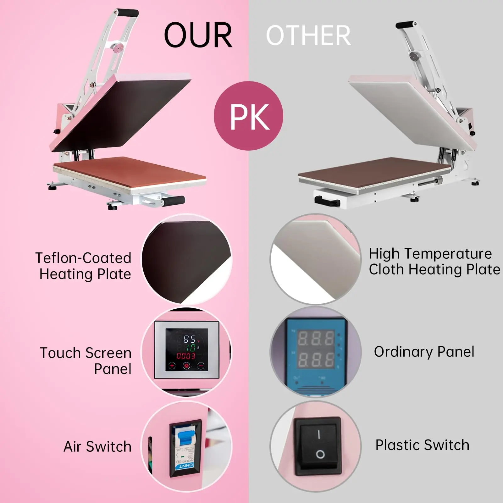 Built for Professional Performance: 3 Key Upgrades Experience enhanced durability and safety with our upgraded commercial heat press.