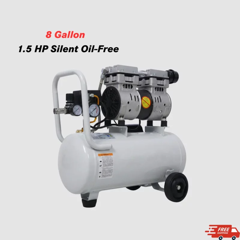 1.5 HP Silent Oil-Free Air Compressor for Pneumatic Heat Press & DTF Printing, 8 Gallon Aluminum Tank, Ultra Quiet 70dB, 115 PSI Consistent Airflow for Commercial T-Shirt Transfer & Sublimation